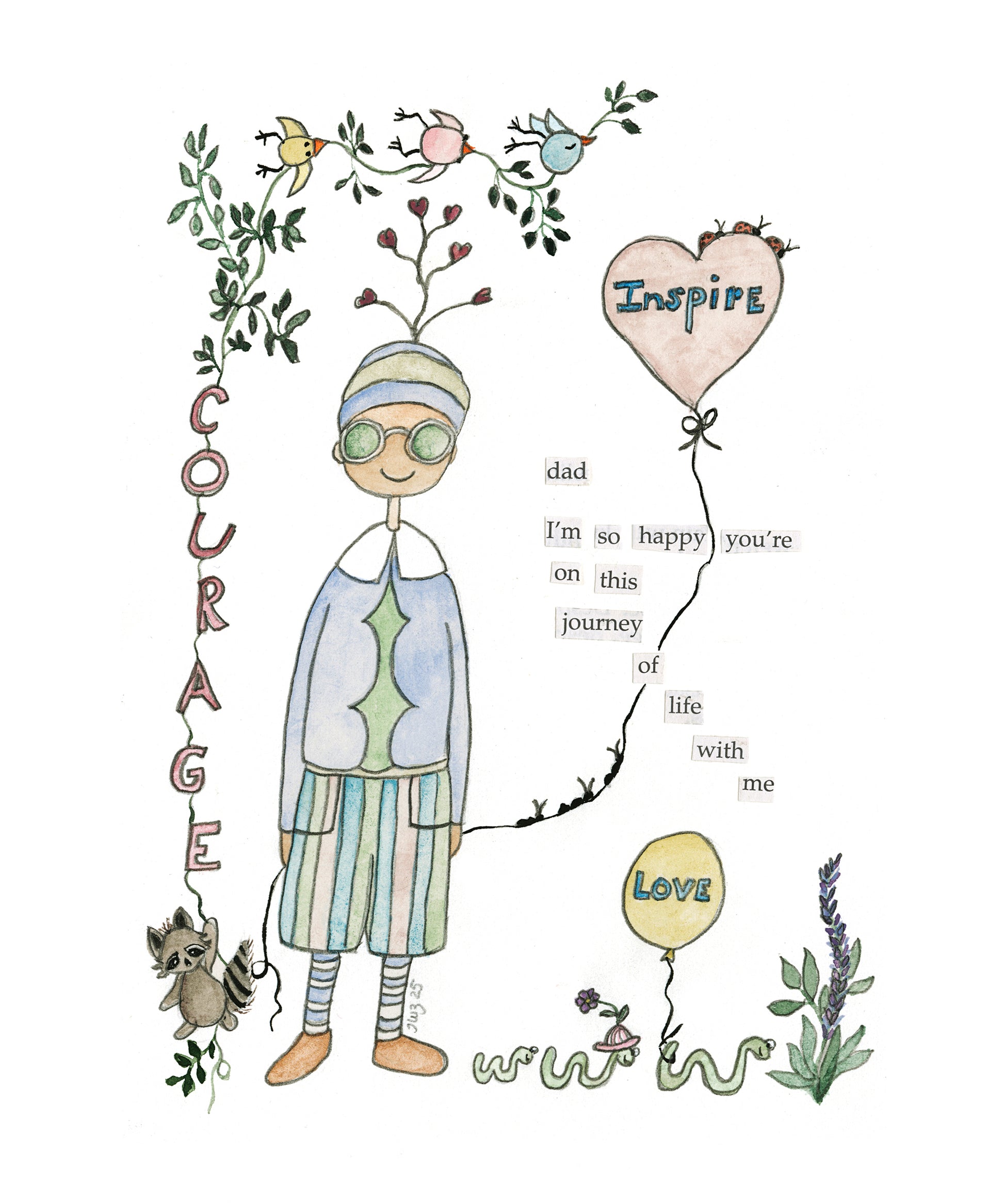 All prints and cards are reproductions of my original drawings & watercolors that are inspired by a long healing journey that has brought me to today and the creation of My Little Friends.